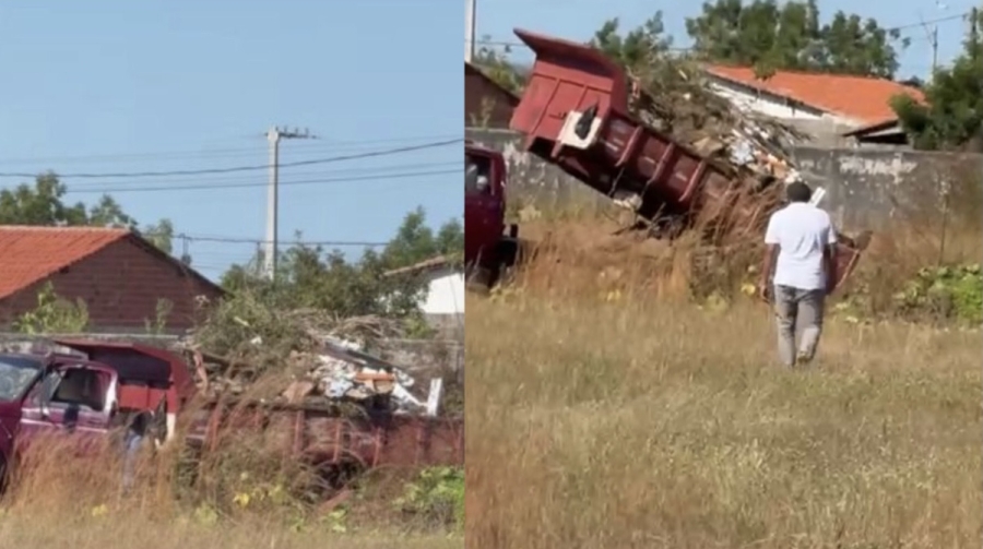 O parlamentar acompanhava um sepultamento e quando viu a caçamba se preparando para fazer o despejo foi até o local para verificar a procedência e confirmou que tratava-se de lixo e bagulho recolhido da limpeza pública da cidade.