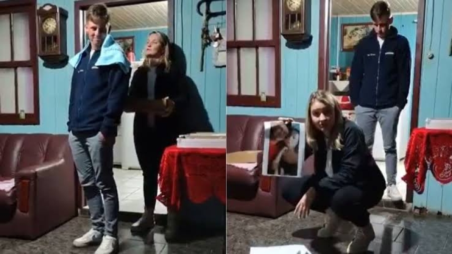A gravação aconteceu no último dia 9, na casa dos pais do agricultor Rafael Eduardo Schemmer, de 27 anos. A ex-companheira dele, Natália Knak, fez o anúncio. "Eu não descobri só uma traição. Eu descobri várias", diz.
