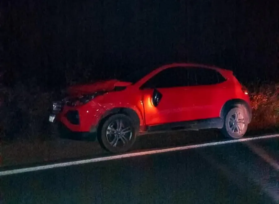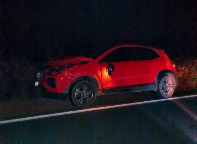 O veículo, conduzido por um representante comercial, colidiu com um cavalo que atravessava a pista. O impacto danificou a parte frontal do carro.