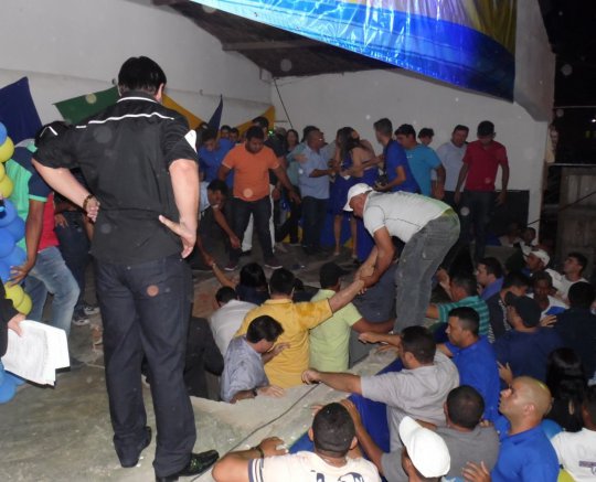 Uma convenção partidária realizada nesta sexta feira (29), em Boa Viagem-CE, foi marcada por um momento de grande susto para políticos e populares do município. O palco de alvenaria que abrigava candidatos e lideranças políticas despencou.