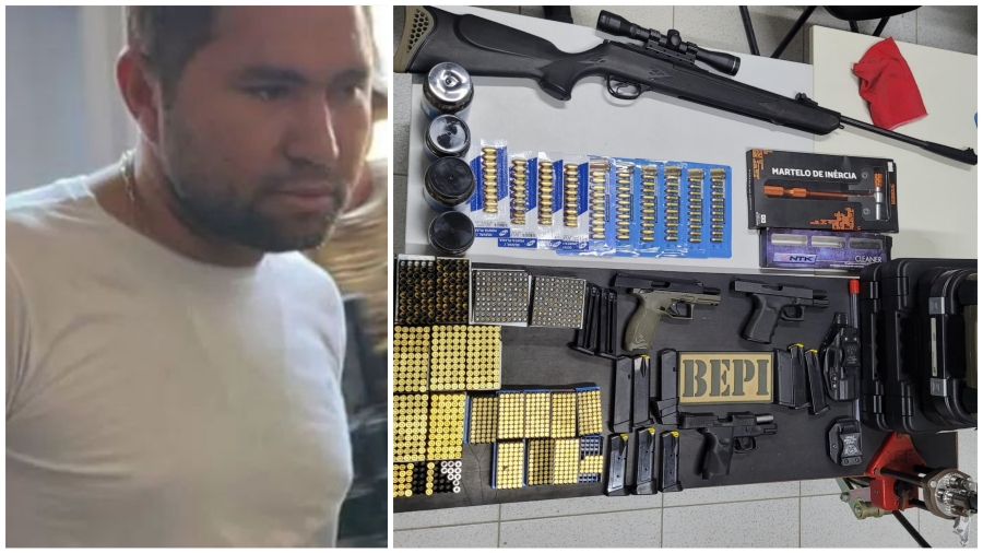 De acordo com a PM, os policiais encontraram três pistolas, sendo uma Glock calibre .380, uma Taurus calibre .22 e uma Taurus G2C calibre 9mm, além de carregadores, coldres, alongadores, uma carabina de pressão, kits de limpeza, maletas e diversos acessórios de armamento. Também foram apreendidas 1.519 munições calibre .22, 155 munições calibre .380, 215 munições calibre 9mm, 900 espoletas e uma máquina de recarga de munições, entre outros materiais.