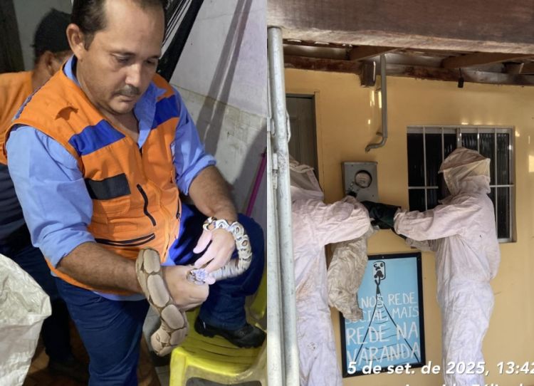 Já a jiboia foi encontrada dentro de uma casa no bairro Estação. Os moradores se assustaram com a presença do animal no local e acionaram o resgate.