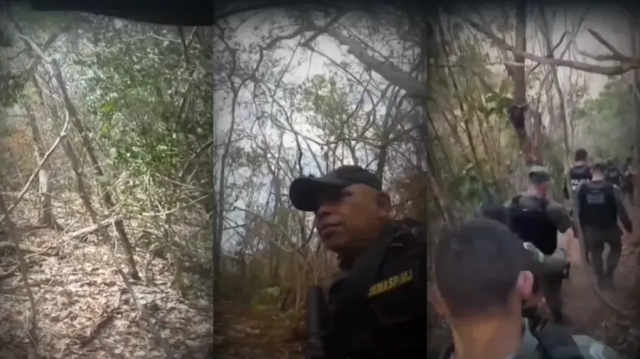 Durante a ocorrência, um veículo suspeito escondido chamou a atenção dos policiais e Kleber adentrou na mata para verificar melhor a situação.