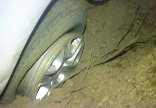 O carro do fujão foi encontrado atolado em uma estrada vicinal e com os dos pneus furados. Ele fugiu pelo mato. A família foi até o local e recolheu o veículo modelo ranger.
