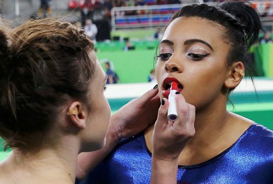 Os saltos mortais e outros mais que fazem a gente pensar que elas têm superpoderes - afinal, como conseguem aquilo, ? - as atletas da ginástica artística da Olímpiada Rio 2016 chamam a atenção pela vaidade. Em meio a muito suor e emoção, as meninas não abrem mão de uma maquiagem poderosa. Cores vibrantes e muito brilho geralmente são as apostas das atletas.