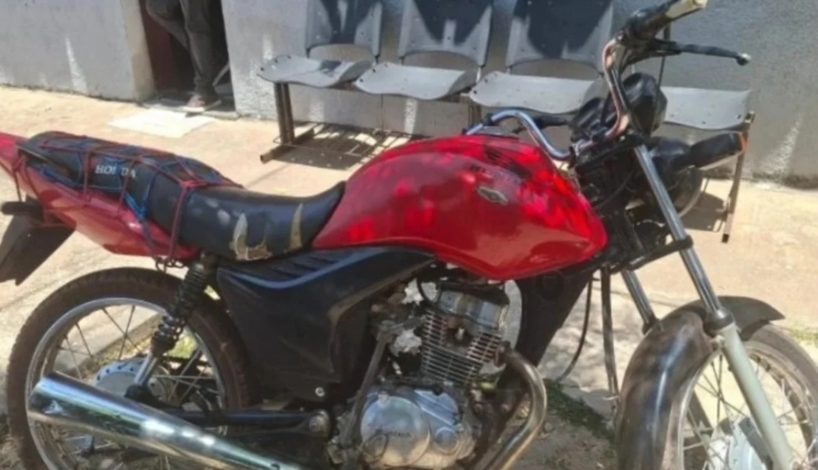 Durante a abordagem, foi constatado que o veículo não possuía placa e, após consulta ao número do chassi, verificou-se que a motocicleta apresentava registro de roubo/furto.