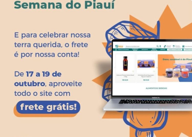 Em comemoração ao Dia do Piauí, o Governo do Estado promove uma ação especial na plataforma Made In Piauí. Entre os dias 17 e 19 de outubro, todas as compras a partir de R$169, realizadas pelo site, terão frete grátis para todo o Brasil. A iniciativa incentiva o consumo de produtos genuinamente piauienses e reforça o reconhecimento da criatividade e da qualidade da produção local.