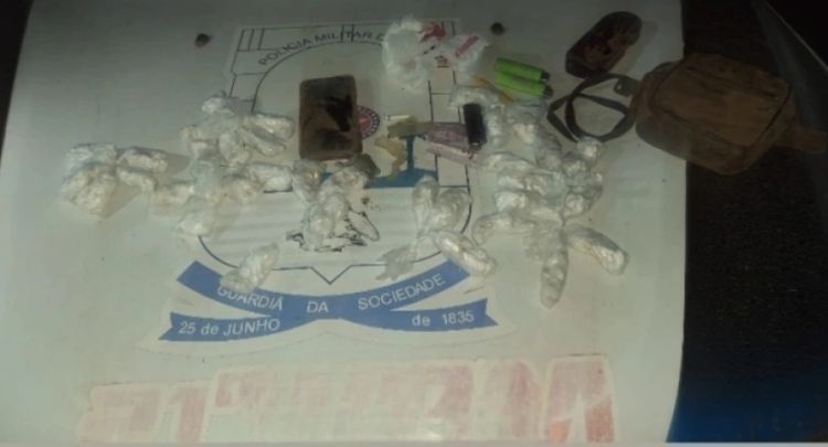 Ao chegar ao ponto indicado, os policiais encontraram o homem e, durante a abordagem, notaram um volume suspeito na região da cintura. Foi solicitado que ele retirasse o objeto, momento em que os militares descobriram um saco contendo uma grande quantidade de pedras de substância análoga ao crack, além de um invólucro de maconha.