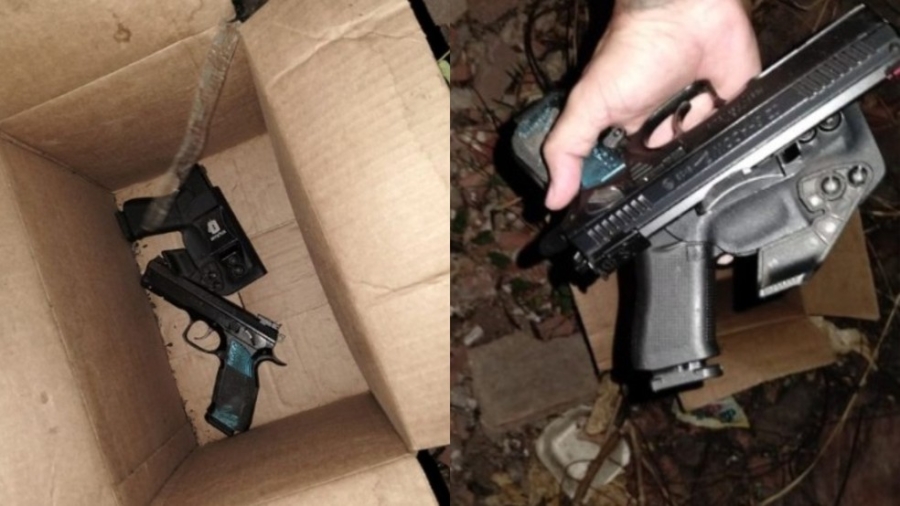 Os agentes localizaram a caixa com as armas em uma área de mata. Segundo o major, as pistolas não haviam sido usadas. A dupla não estava no local.
