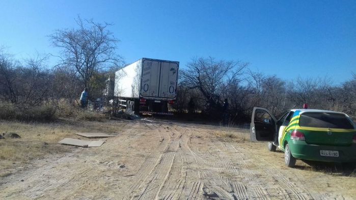 Uma carreta modelo Scania furgão, com placa de Palmito-SC, foi tomada de assalto no distrito de Rajada, no Estado do Pernambuco, e localizada por policiais do Grupamento da cidade de Patos do Piauí.