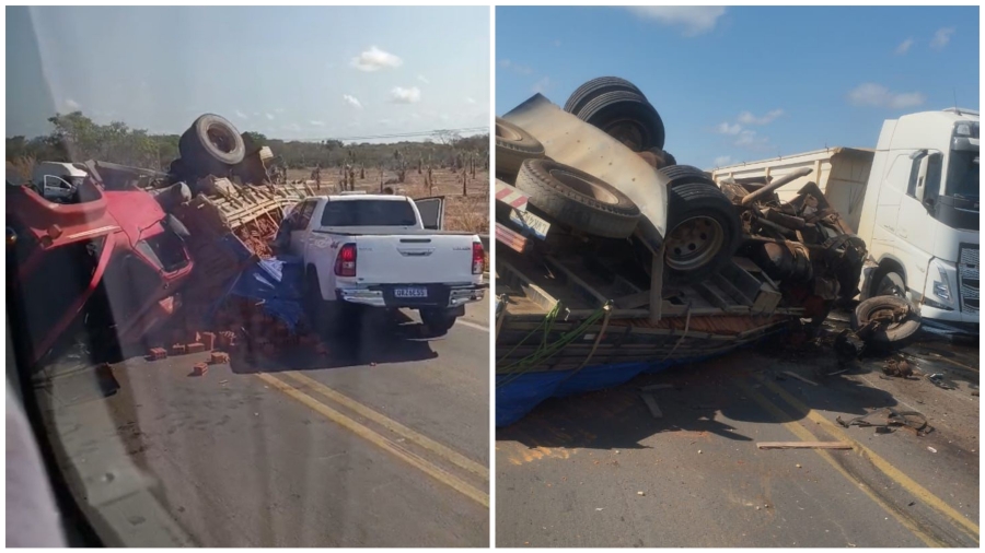 De acordo com informações apuradas pelo Campo Maior em Foco, a colisão envolveu um caminhão carregado de tijolos, uma caminhonete Hilux, e um carro de empresa. O caminhão chegou a virar e ficar com os pneus para cima.