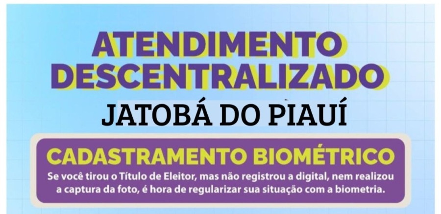 O Tribunal Regional Eleitoral do Piauí (TRE-PI) realizará, nos dias 11 e 12 de novembro de 2025, um atendimento descentralizado no município de Jatobá do Piauí, voltado para o cadastramento biométrico dos eleitores.