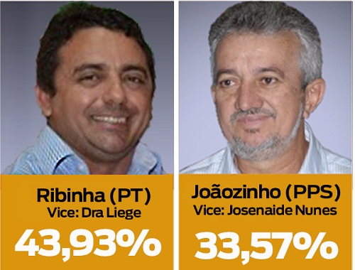 Os pesquisadores perguntaram: Em qual dessas chapas você votaria para prefeito? Professor Ribinha e Liége Cavalcante foram lembrados por 43,93%. Joãozinho Félix e Josenaide Matos foram citados por 33, 57%. Segundo os dados, a disputa maior fica por conta do terceiro lugar. Ribamar Coelho (PHS) pontou 4, 64%, enquanto Dr. Marco Pereira registrou 3, 93%. Marco Damata não pontuou.