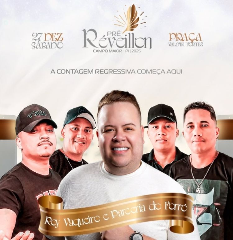 A Prefeitura de Campo Maior confirmou o cantor **Rey Vaqueiro como atração do pré-réveillon do município, marcado para o dia 27 de dezembro (sábado), na Praça Valdir Fortes. O evento é considerado uma das mais tradicionais comemorações de fim de ano da cidade.