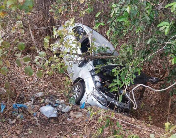 Nas imagens postadas por Rayana Deys, o carro aparece no meio da mata após capotar duas vezes.