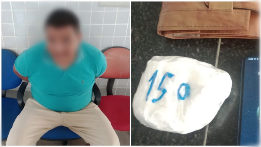 A abordagem ocorreu após o homem demonstrar nervosismo e tentar mudar de direção ao perceber a presença da viatura. Durante a revista pessoal, os policiais encontraram aproximadamente 150 gramas de substância análoga à cocaína.
