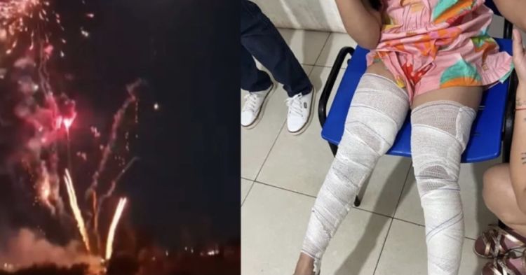 Após o incidente, o casal deixou o local e buscou atendimento médico por conta própria. Segundo Luara, outras pessoas também ficaram feridas durante a queima de fogos.