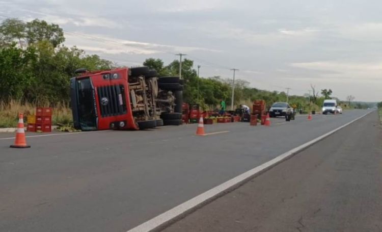 Um caminhão carregado de frutas tombou na madrugada deste sábado (17) na BR-343, no km 210, na município de Capitão de Campos, no Norte do Piauí. O acidente ocorreu por volta das 5h20 e deixou uma pessoa ferida.