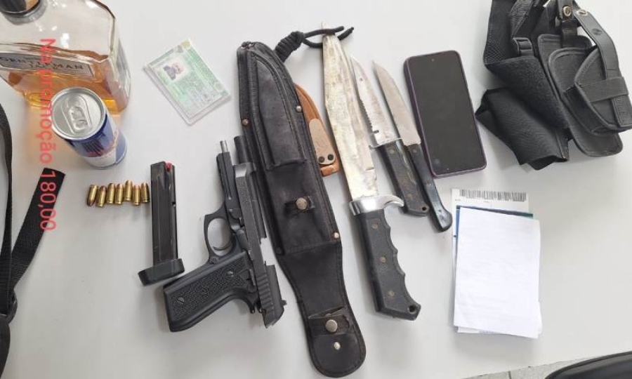 Dentro da bolsa estavam um pistola Taurus calibre .380, um carregador com 7 munições intactas. No veículo ainda foram encontradas três armas brancas e bebida alcoólica Diante da situação, Antonio dos Reis recebeu voz de prisão imediatamente.