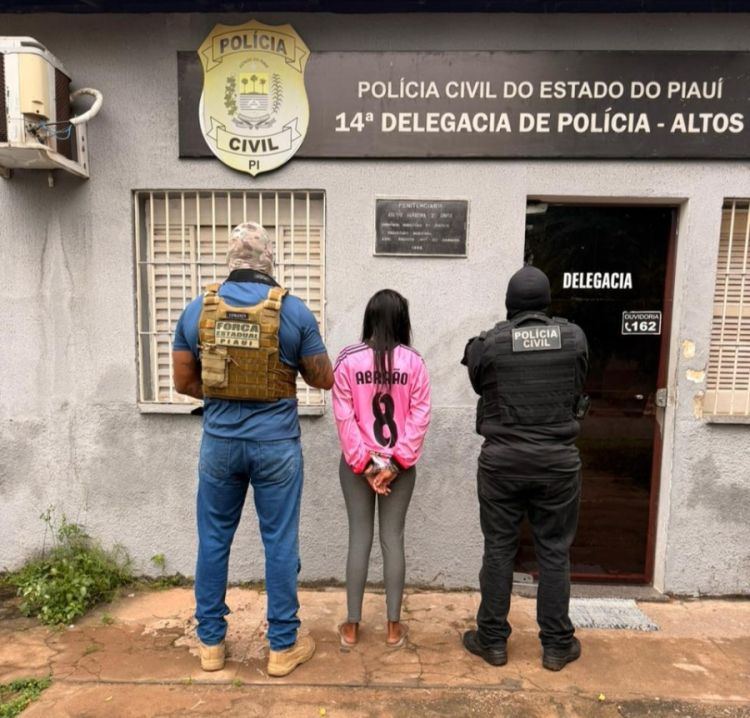 Nesta quarta-feira (21), uma mulher de iniciais A.F.S.S., de 22 anos, foi presa investigada pelo crime de roubo majorado pelo emprego de arma de fogo, e presa também em flagrante pelo crime de tráfico de drogas, no bairro São Luís, município de Altos, Norte do Estado.