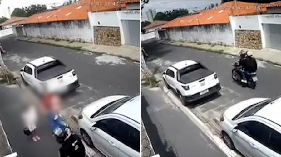 As imagens também mostram que crianças presenciaram o crime. Os dois criminosos que participaram do roubo estavam em uma moto e foram vistos circulando a escola antes de cometer o assalto.