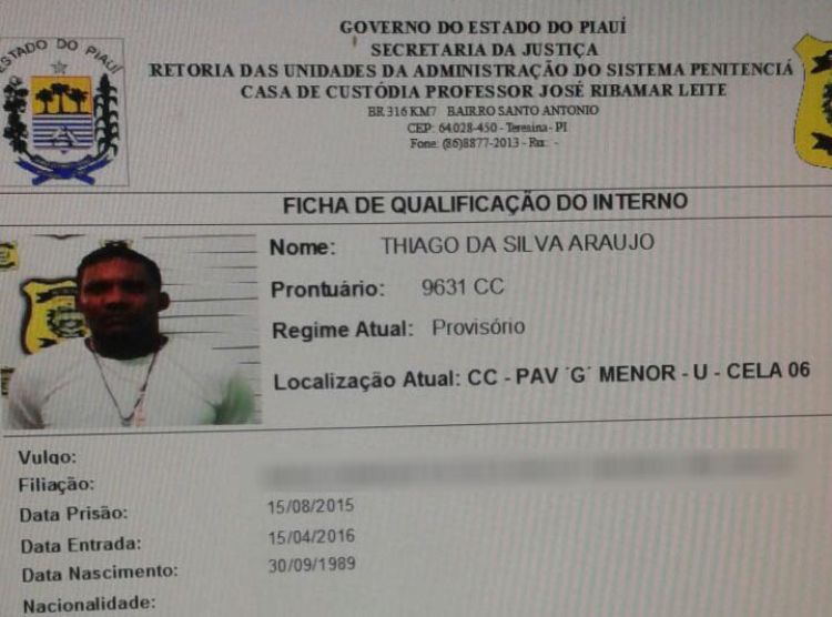 O detento identificado como Tiago da Silva Araújo de 27 anos foi morto com várias perfurações no fim da tarde desta quarta-feira (01) no pavilhão G da Casa de Custódia de Teresina.Thiago era preso provisório e havia dado entrada na Casa de Custódia no dia 15 de abril deste ano. Ele é acusado de roubo seguido de violência e estava preso na penitenciária de Esperantina desde agosto de 2015