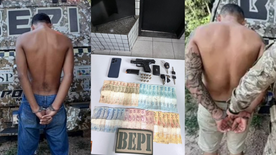Após levantamentos de inteligência, equipes da Polícia Militar localizaram dois suspeitos em frente a uma residência em Altos. Segundo a polícia, ao perceberem a aproximação da viatura, os homens tentaram fugir pulando muros de imóveis vizinhos, mas foram perseguidos e capturados.