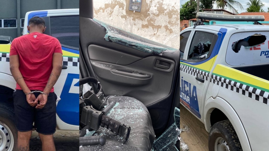 Ainda segundo a PM, após ser orientado, o homem se exaltou, ameaçou a guarnição e, em seguida, arremessou uma pedra de grande porte contra a viatura, quebrando dois vidros.
