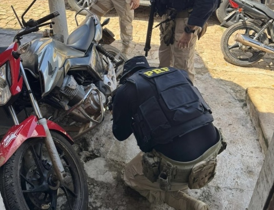 De acordo com a PRF, a primeira ocorrência foi registrada na manhã de domingo, por volta das 9h45. Durante patrulhamento, os agentes visualizaram uma motocicleta estacionada em via pública com indícios de irregularidade na placa.