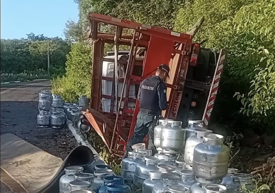 Um caminhão carregado com botijões de gás de cozinha tombou na ladeira do povoado Cipó, na zona rural de Lagoa de São Francisco, no Norte do Piauí. O acidente ocorreu na tarde de sábado (28).