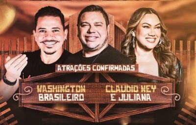 Washington Brasileiro e a dupla Claudioney e Juliana são os artistas confirmados para a tradicional feira, que acontece todos os anos no mês do trabalhador. Neste ano, o evento está marcado para o dia 03 de maio, a partir das 6h, na Praça Antônio Costa.