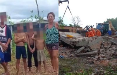 Outros três filhos da mulher, com idades de 3, 13 e 14 anos, ficaram feridos após o desabamento, de acordo com a Polícia Militar.