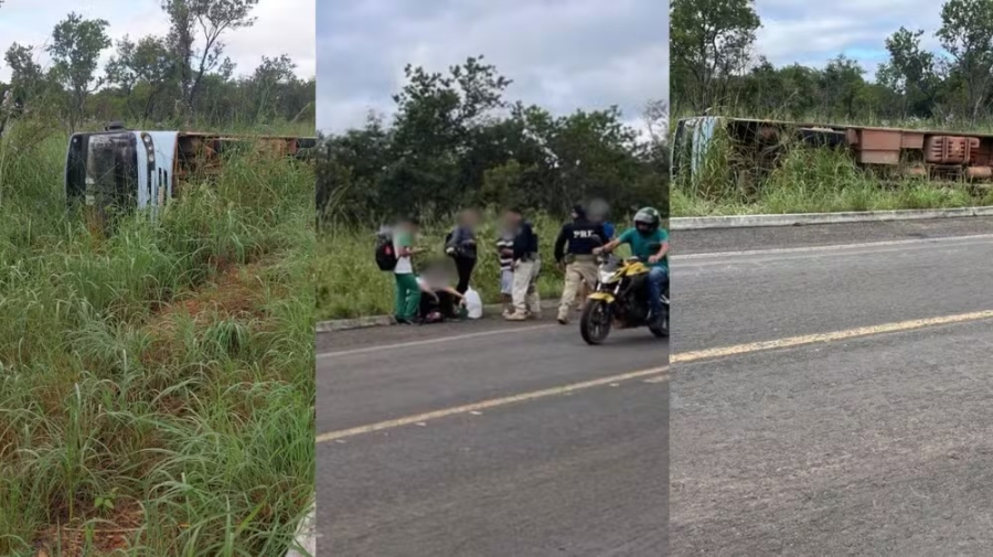 De acordo com a Polícia Rodoviária Federal (PRF), o tombamento foi causado pela quebra da caixa de direção do ônibus.