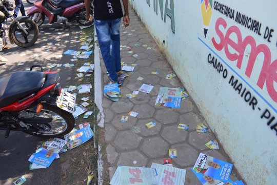 Mesmo com a proibição do derrame de propagada próximo ou nos locais de votação, foi grande a quantidade de material político encontrado nas ruas e avenidas. Cartas propostas, santinho e adesivos estão espalhados nas entradas nos locais.