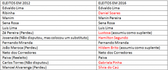 Além de Hamilton que entra na vaga de Josenaide, Lustosa e Hildem Brito assumiram praticamente a legistatura que finda toda, como suplentes; Daniel Soares já havia disputado a eleição passada, ficado em boa suplência, e vem de uma família de politicos com vários mandatos; e Sílvia do Caú era é a vice-prefeita eleita no mandato de Paulo Martins que se finda em dezembro.