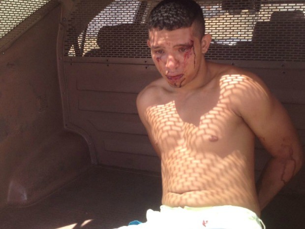 A pol?cia havia sido acionada pelas primeiras v?timas, e prendeu o ladr?o cerca de 10 minutos depois no?bairro Alto do Cristo. Ao ver a pol?cia, o jovem aidna tentou fugir, mas estava muito lesionado e a casa cercada.?Ao chegar ? delegacia, Andrey pediu para fazer um Boletim de Ocorr?ncia contra os outros ladr?es e pediu que a pol?cia sa?sse a procura dos dois, que at? a noite de segunda-feiramn?o haviam sido localizados. O delegado plantonista Pedro Henrique se surpreendeu com o epis?dio. ?Quando est?vamos interrogando e ao final anunciamos que o rapaz estava preso em flagrante, ele ainda ficou espantado. Vivemos em uma sociedade muito insegura. Em plena manh? de domingo, tem bandido na rua. E ? bandido assaltando bandido?, finaliza.
