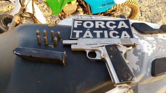 A semiautomática calibre 380, com sete munições, foi encontrada na Lagoa da Araim, no Bairro Cidade Nova, onde os três acusados foram presos após perseguição.