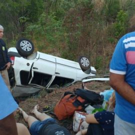 Os ocupantes do veículo tiveram apenas ferimentos leves. A Polícia Rodoviária Federal está no local, mas ainda não informou as causas do acidente. O carro modelo Fiat Uno de cor branca ficou com as rodas pra cima.