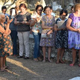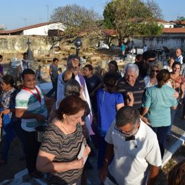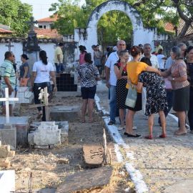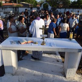 O raiar do sol trouxe consigo os primeiros visitantes. No “Cemitério Velho”, no centro, a primeira missa de finados teve início às 5h30. A celebração realizada por Padre Benedito reuniu féis que seguem a tradição Católica. Orações e músicas religiosas buscavam trazer paz ao espírito e conforto as pessoas com familiares sepultados no local.