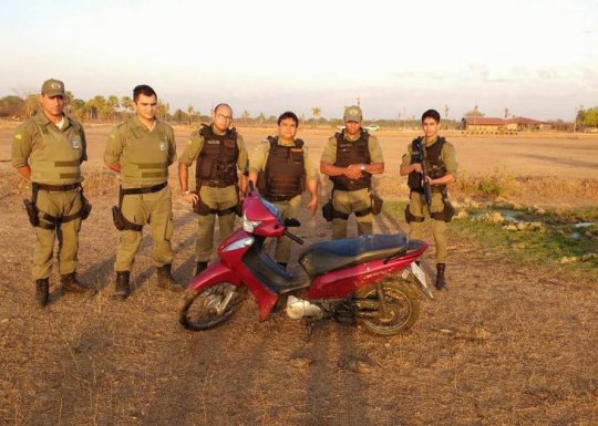 Uma equipe de policiais militares comandada pelo Sargento Enilton encontrou nas primeiras horas desta terça-feira, a moto modelo Biz 125, de cor vermelha e placa PIA-1690, que foi tomada de assalto na noite de ontem em frente a uma academia na entrada do Bairro Cariri.