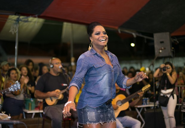Adriana Bombom usou uma blusa decotada e uma sainha bem curtinha para prestigiar o evento “Nada pra fazer”, uma roda de samba que acontece sempre aos feriados em Realengo, na Zona Oeste do Rio, comandada pelo grupo "Vou pro Sereno". Bombom escolheu sambar por lá no Dia da Consciência Negra, no domingo, 20.