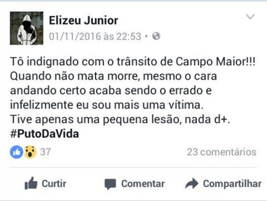 No início deste mês ele havia sofrido outro acidente. Segundo informações um carro teria batido nele e causado lesões leves. O jovem chegou a fazer uma postagem no facebook lamentando o ocorrido e reclamando da imprudência no trânsito.