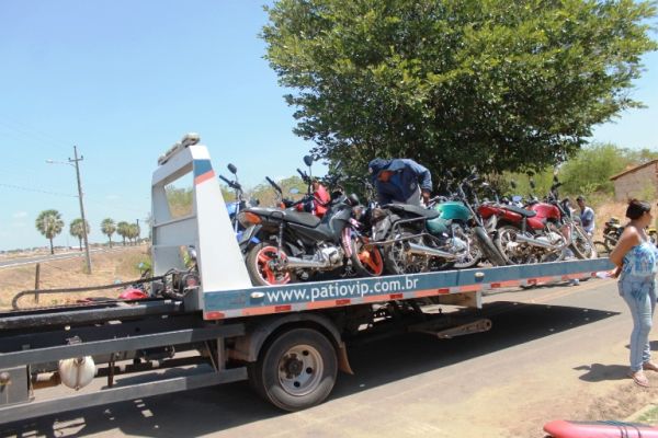 O número de motos apreendidas só será contabilizado no final do dia, mas calcula-se que o número possa chegar a 50. A operação contou com 25 Agentes, 12 motos, 5 viatura e 4 pranchas. Os transportes apreendidos foram levados para o Detran (PI) de Teresina.