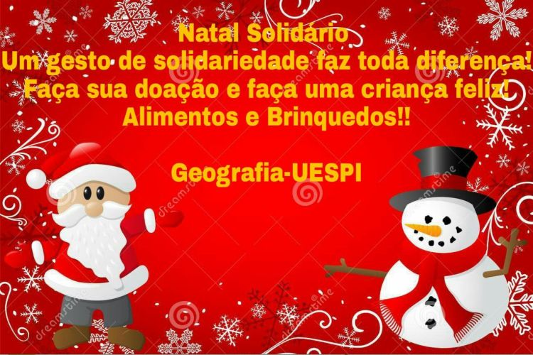 As comemorações de fim de ano já estão chegando e nesta época crescem as mobilizações para tentar ajudar as pessoas mais necessitadas. Entrando no espírito natalino, as turmas de Geografia da UESPI (Universidade Estadual do Piauí) do Campus "Herois do Jenipapo", sediado em Campo Maior-PI, estão realizando uma campanha para arrecadar alimentos e brinquedos para famílias carentes.