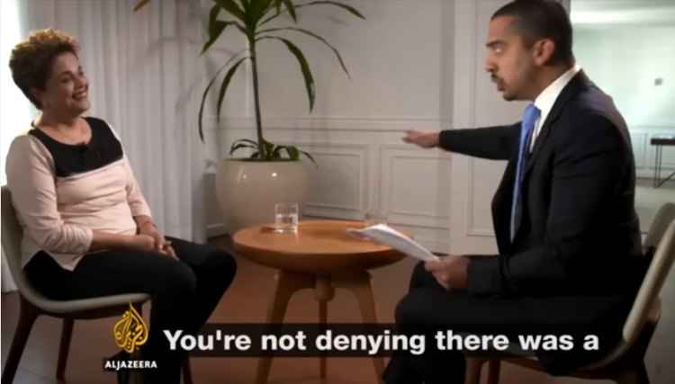 A ex-presidente Dilma Rousseff se exaltou com questionamentos feitos pelo jornalista Mehdi Hasan, do programa "UpFront", da rede de televisão Al Jazeera, do Catar. Um vídeo divulgado nesta sexta-feira (16) na página do programa no Facebook mostra uma parte da conversa entre os dois, que aconteceu no Rio de Janeiro, onde a ex-presidente vive desde que deixou o Palácio do Planalto, em agosto deste ano, após sofrer um processo de impeachment.