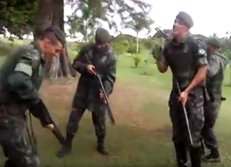 Nas imagens, os militares dançam ao som da música “Muito louco de balinha”. Cinco homens engatilham as carabinas, enquanto os cartuchos de munição caem no chão, no ritmo da música. Um sexto filma a ação.