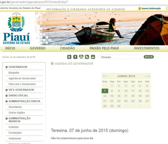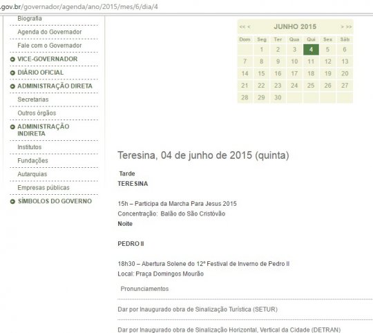 Ocorre que nas duas datas não consta na agenda do governador, nenhum ato oficial em Cajeueiro da Praia. No caso de junho, a segunda viagem, consta na pagina do governo que no dia 04 Wellington Dias estaria em Teresina pela manhã e à noite no festival de inverno em Pedro II. Nas demais datas, a agenda oficial do governo não consta nada.