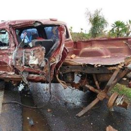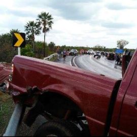 O condutor do caminhão teria confidenciado para populares que não percebeu a curva e por isso passou direto colidindo-se com a lateral da picape que era ocupada por um casal. O caminhão desceu o aterro e a picape ficou na pista graças ao guard rail (mureta de metal que fica na margem da pista).