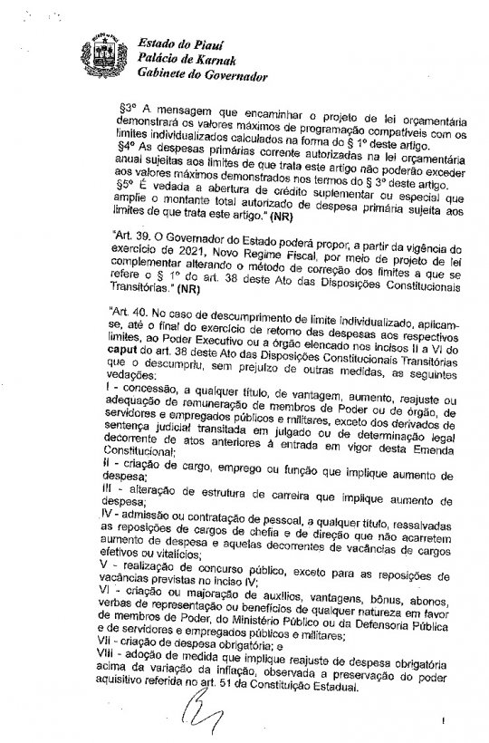 A redação final do Projeto será votada nesta terça-feira e será encaminhado para ser sancionado pelo governador Wellington Dias. Segundo o Sindicato dos Trabalhadores da Educação Básica Pública do Estado do Piauí (SINTE) a PEC de Wellington Dias é igual à PEC 55 aprovada pelo governo Temer em nível nacional. A única diferença é que o congelamento dos investimentos no estado será por 10 anos.