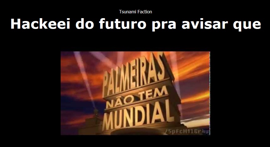 Foi feita uma montagem com a seguinte frase: “Hackeei do futuro para avisar que Palmeiras não tem Mundial”.